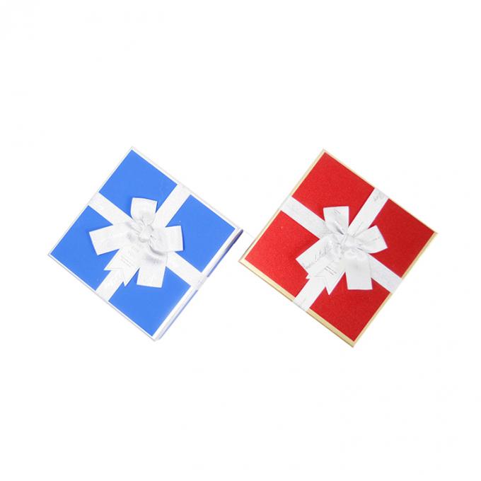 square cardboard packaging box with ribbon